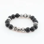 Chrome Hearts Natural Obsidian 8-Silver Bead Bracelet